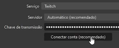 Para transmitir do OBS para o seu canal na Twitch, vamos em configurações, Stream, e podemos preencher com a chave de transmissão, disponível no painel de controle da sua Twitch, ou só conectar sua conta da Twitch diretamente ao OBS. Agora, assim que clicar em “começar transmissão”, você entrará ao vivo no seu canal.
